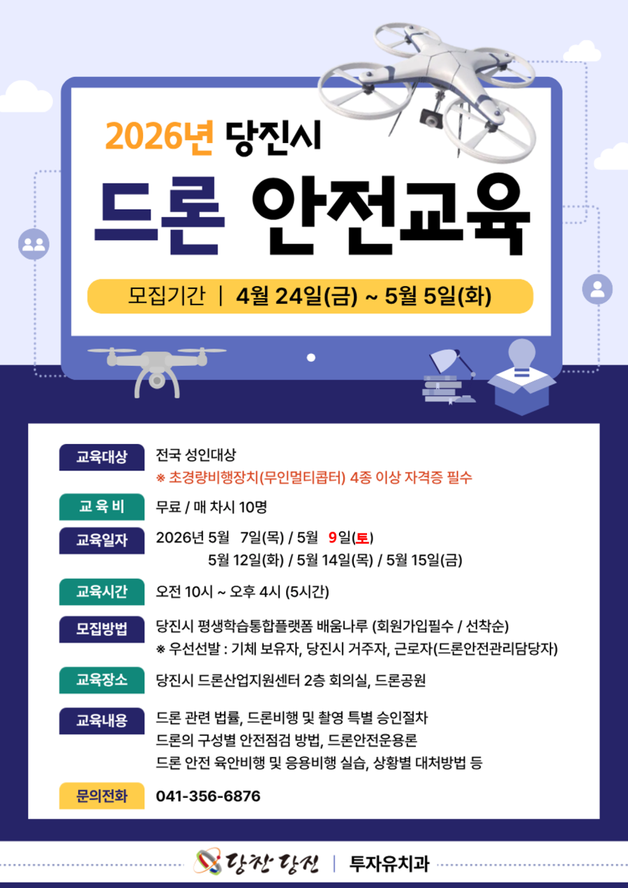 이번 교육은 오전 10시부터 호후 4시까지 당진시 드론산업지원센터에서 진행되며