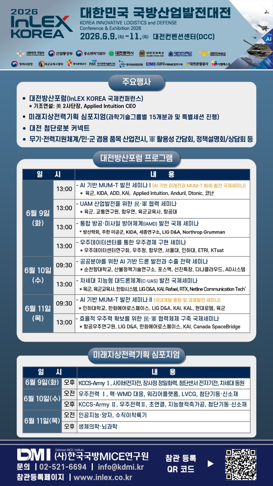 26. 6. 9.~11, 대전컨벤션센터에서 육/해/공군, 군수사/교육사, 대전시와 공동 진행됩니다.